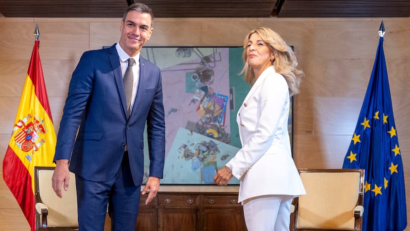 Después de dos meses de discretas reuniones, los socios de la coalición escenifican este miércoles su primer encuentro público para encarrilar un acuerdo de Gobierno que permita avanzar en la agenda social la próxima legislatura. Pedro Sánchez, que el martes era designado por el Rey como candidato a la investidura, no ha esperado ni 24 horas para iniciar la ronda de contactos con los grupos parlamentarios. Sin descuidar el flanco clave con el independentismo catalán, ha decidido inaugurar estas reuniones por la mañana con la líder de Sumar, Yolanda Díaz, reconociéndole un papel preferente en la nueva fase. La vicepresidenta segunda en funciones ha apremiado en las últimas horas a los socialistas a acelerar un pacto que sea “ambicioso” y ha buscado elevar la presión sobre ellos al desvelar algunas de las exigencias programáticas de su plataforma, como la reducción de la jornada laboral o la necesidad de abordar ya la reforma del sistema de financiación autonómica. Fuentes socialistas reconocen su intención de recuperar la cartera de Igualdad, que ha tenido Podemos en esta legislatura, mientras que en Sumar aseguran que la discusión no está ahora en el reparto de competencias.