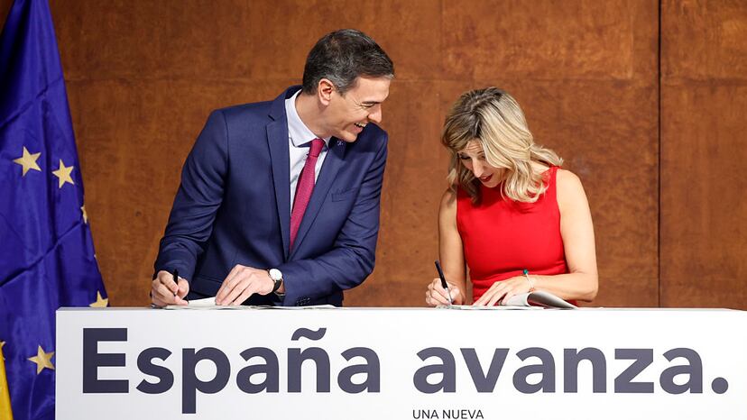 Todo está listo para cuajar el pacto definitivo para la investidura de Pedro Sánchez, pero aún no hay fecha ni acuerdo cerrado. El escenario ideal para el Ejecutivo sería la semana del 6 de noviembre, después de la jura de la Constitución de la princesa Leonor de Borbón ante las Cortes el 31, y así Sánchez podría llegar ya investido presidente al congreso del Partido Socialista Europeo del 10 y 11 de noviembre en Málaga. Pero la fecha no la decide el Gobierno, sino la negociación. Y ahí el PSOE está en manos de sus aliados para esta investidura, en especial los independentistas de ERC y Junts, los apoyos más difíciles de amarrar. Nadie se atreve, pues, en el Ejecutivo a dar fechas ciertas, aunque no hay muchas más opciones: si no es la del 6, tiene que ser la del 13 o la del 20, porque después ya se llegaría al 27 con la convocatoria automática de elecciones. Pero lo que sí trasladaron este martes distintas fuentes de los dos sectores de la coalición, tras la firma del acuerdo entre Pedro Sánchez y Yolanda Díaz, es que confían en que este pacto, una especie de contrato de la coalición, sirva como un incentivo para rematar la negociación con ERC, Junts y los otros socios necesarios: PNV, Bildu y BNG.