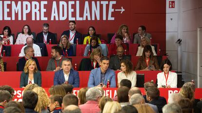 La sesión extraordinaria del comité federal se convocó el martes por la tarde, para sorpresa incluso de los dirigentes más afines a Sánchez. El escenario idóneo que contemplan en el PSOE es que la investidura se celebre la semana del 6 de noviembre, antes del congreso del Partido Socialista Europeo de los días 10 y 11 en Málaga, un calendario que no daba ningún otro margen a Ferraz y La Moncloa si querían convocar al principal órgano de decisión del partido entre congresos. La opción de que el comité federal fuese el 4 de noviembre habría retrasado forzosamente una semana el debate de investidura, sin siquiera tener que esperar al pacto con Junts, el más complejo de todos y del que depende que Sánchez sea investido antes del 27 de noviembre o que el 14 de enero haya repetición electoral.