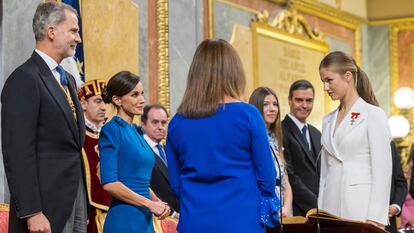 Tras recordar que España es un país “democrático, libre y moderno”, Sánchez ha asegurado que su futuro se enriquecerá con el papel que a partir de ahora está llamada a jugar la princesa de Asturias, a la que ha dicho, a modo de consejo, aludiendo a la Monarquía sin citarla: “Las instituciones de una democracia ganan su estatura no solo por su historia, que también, sino por su capacidad de servir al bien común, un precepto que estoy convencido guiará vuestra conducta”.