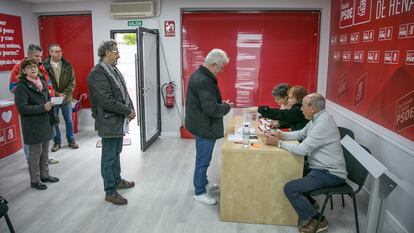 Los militantes más rezagados desfilaron este sábado por las casas del pueblo para votar a la antigua usanza: en urna y en persona. Poco después de las diez de la mañana llegaban los primeros afiliados a la agrupación de San Fernando de Henares (Madrid). “He votado a favor porque confío en el presidente. A mi alrededor preocupan más las políticas sociales que la amnistía, que ayudará a mejorar la relación entre los españoles”, afirmaba Sebastián Gómez, técnico logístico, de 45 años. “La alternativa es un Gobierno del PP y Vox y ya hemos visto los últimos meses a lo que se dedican”, asentía María Teresa Polo, jubilada de 69 años.