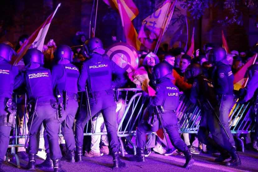 Finalmente, la policía ha cargado en Madrid contra los manifestantes, que se han mostrado indignados. Así, mientras Santiago Abascal abandonaba la calle de Juan Álvarez, en la de Ferraz comenzaron los disturbios, en los que se han empleado pelotas de goma, disparos detonadores y botes de humo.