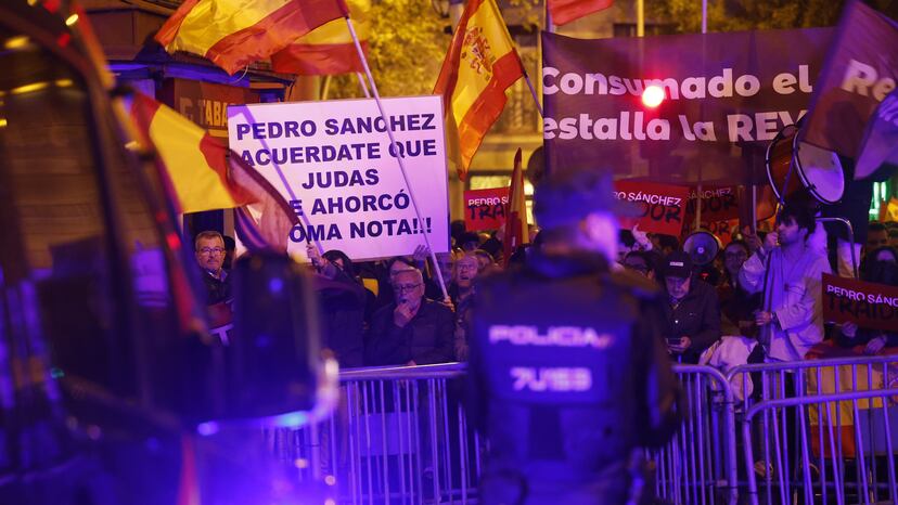 Octava noche de protestas contra la amnistía, tras afianzar Sánchez la mayoría absoluta para su investidura