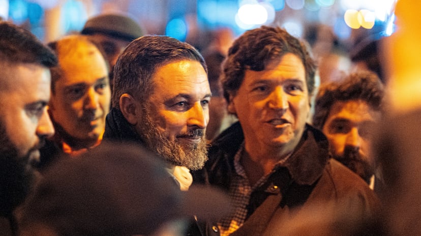 Abascal suma a las protestas en Ferraz a Tucker Carlson, el presentador ultra de EE UU despedido por Fox News