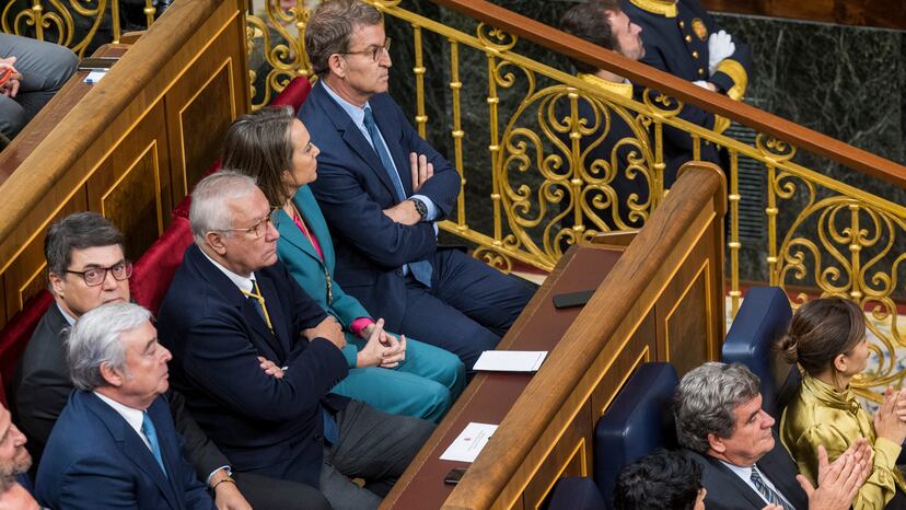 A algunos socios de investidura de Sánchez se ha referido precisamente Feijóo a su llegada a la sesión de apertura al Congreso, antes del discurso de Armengol. Ni ERC ni EH Bildu ni BNG han acudido al acto y han firmado una declaración conjunta en la que han justificado su ausencia en que la Monarquía es una institución “incompatible” con los principios democráticos y, por tanto, no los representa. El líder de la oposición ha censurado tales aseveraciones: “Estas anomalías democráticas deslegitiman las instituciones y acreditan que el Gobierno tiene como socios a partidos que no creen en España”. Feijóo ha tachado el gesto de “boicot al Rey” y ha pedido “un descuento salarial” para dichos diputados por faltar a “su puesto de trabajo”.