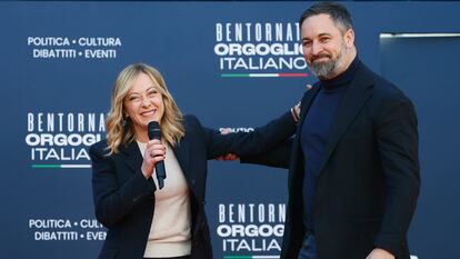 Santiago Abascal, líder de Vox, era uno de los platos fuertes de Atreju, el congreso que cada año celebran las juventudes de Hermanos de Italia, el partido que preside Giorgia Meloni. La organización le reservó una espacio de honor este domingo en el día de la clausura. Llegaba en medio de la polémica por haber dicho que algún día al presidente del Gobierno, Pedro Sánchez, le colgarían los ciudadanos por los pies. El malestar había llegado incluso a Italia. Por eso dedicó los primeros minutos de su corta intervención a la cuestión. “No deseo a nadie, ni siquiera a un corrupto y un traidor, que le cuelguen por los pies”, lanzó nada más arrancar.