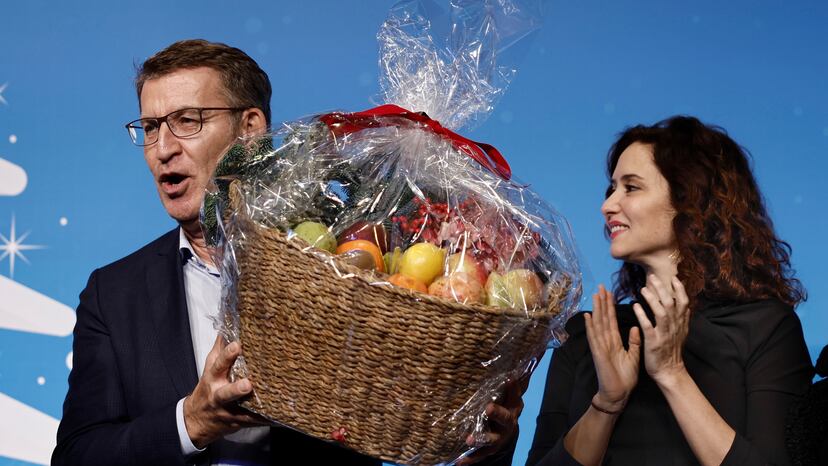 Aguinaldo en la cena de Navidad del PP de Madrid: Ayuso regala cestas de fruta a cuatro afiliados
