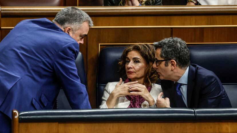 Las conversaciones entre los equipos negociadores del PSOE y Junts se alargaron hasta instantes antes de la votación del dictamen y de la ley de amnistía por si Junts cambiaba de opinión. La tensión se mascó durante tres horas en el ambiente, con todas las miradas concentradas en los pesos pesados del Ejecutivo y en la parte de la grada donde se sentaban los parlamentarios de Puigdemont. Rafael Simancas, el secretario de Estado de Relaciones con las Cortes que con el anterior Gobierno de coalición se labró la fama de salvar un sinfín de votaciones, hacía llamadas desde su escaño. Cerdán, el secretario de Organización del PSOE, y la vicepresidenta primera, María Jesús Montero, tampoco soltaban el móvil: uno de los interlocutores del número tres de los socialistas desde el lunes por la noche fue el secretario general de Junts, Jordi Turull.