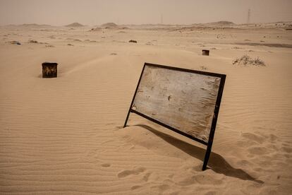 Pero Nuadibú es implacable. Ni siquiera la memoria de los más desafortunados permanece mucho tiempo. En la margen derecha de la única carretera que conduce a la ciudad, la arena y el olvido han devorado el cementerio improvisado de uno de los peores naufragios de migrantes que ha vivido la ciudad. Fue una mañana de 2019. Más de 60 cadáveres fueron recuperados del agua y las rocas después de que una ola provocara el vuelco de un cayuco en apuros. El cartel que anunciaba el camposanto hace tiempo que no cumple su función. Las letras se han borrado y el óxido ha destrozado los cuatro bidones que delimitan el espacio. A pocos metros bajo tierra, solo huesos sin nombre.