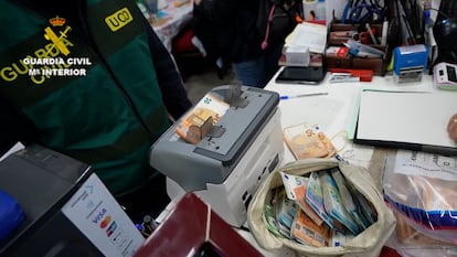 La escena, recogida en el vídeo que acompaña esta información, fue captada por los agentes de la Unidad Central Operativa (UCO) de la Guardia Civil durante la Operación Guanxi, que ha desembocado en la detención de 13 personas y ha permitido desmantelar una supuesta trama de blanqueo de capitales que funcionaba como un banco clandestino para sacar de España rumbo a China una media de tres millones de euros semanales. No fue la única secuencia similar que grabaron. A lo largo de los más de dos años que duró la investigación, la escena se repitió numerosas veces. Lo que los miembros del instituto armado estaban registrando con sus cámaras era la entrega de importantes cantidades de dinero negro a plena luz del día mediante un sistema de control tan tradicional como efectivo: un billete roto como señal, lo que se conoce como token (código o señal, en inglés).