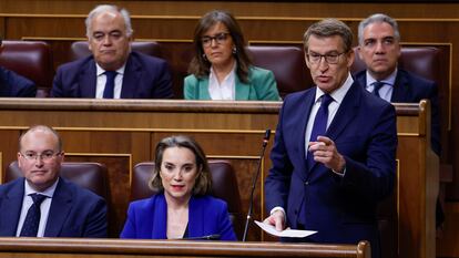 La diana de Alberto Núñez Feijóo y los suyos no cesa de moverse. En su estrategia de bombardeo total y sin tregua, noche y día, contra el Gobierno “corrupto” ―según repite cada diputado popular que toma la palabra en el Parlamento―, van desfilando los objetivos, de la presidenta del Congreso, Francina Armengol, a buena parte de los ministros. Con el PP enredado ahora en la controversia por el fraude fiscal de la pareja de la presidenta madrileña, la diana se ha detenido en otra protagonista: la esposa del jefe del Gobierno. Feijóo en persona anunció este miércoles su propósito de abrir una investigación ―se supone que en el Senado, donde el PP ya ha creado una comisión indagatoria― sobre las relaciones profesionales de Begoña Gómez y Air Europa, una de las compañías rescatadas por el Ejecutivo cuando tuvo que cesar sus actividades por la pandemia.