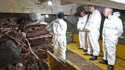 El Ejecutivo lleva toda la semana centrando en este asunto su crítica al PP y, en ese contexto, Sánchez ha visitado este jueves el laboratorio instalado en el Valle de Cuelgamuros, donde un equipo de forenses trabaja para tratar de identificar los restos de 160 víctimas de la Guerra Civil, la mayoría represaliados del franquismo, reclamados por sus familiares. “La ley se va a cumplir y debemos saldar nuestra deuda pendiente con quienes dieron su vida luchando por la libertad y la democracia en España”, ha escrito el presidente del Gobierno en la red social X. “Justicia, reparación y dignidad para todas las víctimas de la guerra y la dictadura”, ha añadido en un mensaje con imágenes de la visita. Le ha acompañado el ministro de Política Territorial y Memoria Democrática, Ángel Víctor Torres, y los dos forenses que dirigen el equipo, Francisco Etxeberria y Francisco Ferrandis.