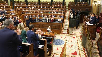 Sánchez iba en una línea opuesta, y ha sido muy duro con Netanyahu, a quien ha acusado de “no tener un plan para la paz en Palestina”. “Netanyahu sigue bombardeando hospitales, colegios, viviendas. La Fiscalía del Tribunal Penal Internacional ha pedido su detención por crímenes de guerra. Luchar contra Hamás es legítimo, pero con Netanyahu la solución de los dos Estados está en peligro. La solución que ha promovido solo lleva al odio. No podemos permitirlo”, clamó el líder del PSOE en una sesión del Congreso que los progresistas creen que será recordada como un hito histórico que da un giro a la posición de España. “Tenemos una deuda histórica con el pueblo palestino. Durante más de medio siglo se han ignorado las resoluciones de la ONU. Esa pasividad debe acabar”, ha insistido. Aunque también ha buscado palabras de apoyo y respeto a Israel y al pueblo judío: “Este reconocimiento no es contra el pueblo de Israel, un pueblo al que respetamos y apreciamos. Mucho menos contra los judíos, un pueblo admirable muy vinculado a la historia de España”.