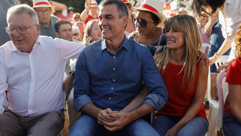 “Os hablo desde el corazón: estos días, en estos últimos meses, cuando han arreciado muy duramente a mí y a mi familia los ataques de la internacional ultraderechista, he sentido la solidaridad, la empatía, el compañerismo de una gran familia que es la familia del PSOE. Os lo agradecemos, Begoña y yo. Gracias de corazón”, ha arrancado su intervención Sánchez, que durante los discursos anteriores no ha soltado la mano de su esposa, hoy de vuelta a la primera línea de un mitin socialista casi un año después de que asistiera al cierre de la campaña de las elecciones generales del 23-J en Getafe, donde lució una chapa con el lema Perra Sanxe. “No somos ingenuos, no hemos sido los primeros en sufrir esos ataques, los han sufrido muchos concejales y concejalas, militantes del PSOE que abren y cierran las agrupaciones locales y que han sufrido durante estos últimos meses el asedio vil de la derecha y de la ultraderecha y el silencio cómplice de todos esos tabloides digitales que lo único que hacen es enfangar el debate público en nuestro país. A todos ellos y a todas ellas, mi solidaridad y mi compañerismo como secretario general del PSOE”, ha abundado el presidente del Gobierno.