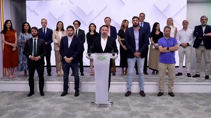 El proceso de divorcio no ha sido fácil: de los 12 consejeros que tenía Vox en los cinco gobiernos autonómicos, dos continúan en sus puestos tras romper la disciplina de partido y cinco han sido cesados, aunque al menos uno de ellos quería conservar el cargo. Abascal ha reconocido que los vicepresidentes estaban “muy preocupados” por las personas a las que han “involucrado en esos gobiernos, que en algunos casos habían dejado sus trabajos y después de solo un año se ven fuera de esas responsabilidades, probablemente con situaciones personales difíciles, pero en Vox”, ha añadido, “no se toman las decisiones por sillones, se toman por principios”. El líder ultra ya aventuró que algunos cargos de su partido podrían romper la disciplina y negarse a salir de los gobiernos, como se comprobó luego: “Eso es algo que puede ocurrir siempre. Comprendemos situaciones de personas que han tomado la decisión de involucrarse en estos gobiernos y han tenido que abandonar sus trabajos. Tengo toda la comprensión humana y política para esas decisiones, [pero] si alguien decide quedarse en los gobiernos, no será de Vox”, subrayó.