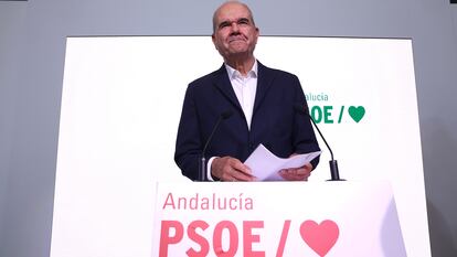 “Nerviosillo” en su primera rueda de prensa en la sede del PSOE andaluz en 14 años, Manuel Chaves ha vuelto a ejercer este jueves, ya sin cargo, el liderazgo que tuvo desde que fue elegido por primera vez presidente de la Junta en 1990. “La sentencia del Tribunal Constitucional supone un punto de inflexión en la política andaluza: empieza el principio del fin del ciclo de Gobierno del PP en Andalucía”, ha pronosticado Chaves en una sala abarrotada de periodistas y a la que ha asistido en primera fila el secretario general del PSOE andaluz, Juan Espadas.