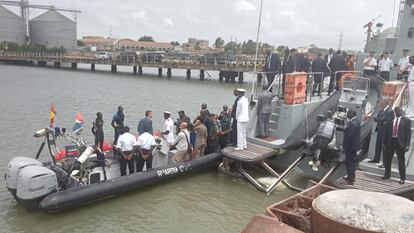 El presidente del Gobierno, Pedro Sánchez, ha agradecido este miércoles en el puerto de Banjul (Gambia) la tarea de los policías y guardias civiles españoles que luchan contra el tráfico de seres humanos desde las costas africanas. “Vuestro trabajo en materia migratoria es imprescindible para evitar la pérdida de vidas humanas y conseguir una gestión del reto migratorio que sea segura, ordenada y regular”, ha subrayado en la desembocadura del río que da nombre al único país de habla inglesa en la zona. “Es de justicia decirlo: sois imprescindibles”, ha añadido.