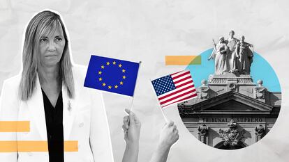 La magistrada del Tribunal Supremo, Isabel Perelló, se ha convertido en la primera mujer en presidir el Consejo General del Poder Judicial (CGPJ) y el Tribunal Supremo. Un hito que llega a nuestro país cuando las mujeres son ya una mayoría consolidada en la carrera judicial, más del 57%, pero siguen teniendo dificultad para ascender a puestos más altos: juezas y magistradas son el 21,1% en el Tribunal Supremo. En esta nueva entrega de Global, el formato de vídeo en el que corresponsales de EL PAÍS explican cómo se viven en los países desde los que informan situaciones o debates que están de actualidad en España, Rafa de Miguel, corresponsal en Reino Unido, Miguel Jiménez, corresponsal en Washington y Tereixa Constenla desde Portugal, analizan el liderazgo femenino en la cúspide judicial de sus respectivos países.
