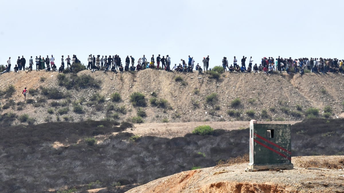 Las autoridades marroquíes han intensificado la vigilancia en los espigones del Tarajal y de Benzú, para hacer abortar las entradas a nado, y en el paso terrestre del Tarajal y la valla perimetral, donde finalmente se han producido los intentos de asalto. Simultáneamente, los puestos policiales de control se han multiplicado en las carreteras del norte de Marruecos. En puntos como la estación de autobuses de Tetuán o en la ferroviaria de Tánger se han practicado decenas de detenciones, informa Efe desde la zona. Grupos de jóvenes seguían concentrados al atardecer de este sábado en pistas forestales y montes próximos a Ceuta, en la carretera que lleva hasta Fndieq e incluso en la autovía de Tánger. Algunos gritaban “¡Alá es el más grande!”, y otros portaban piedras o botellas de cristal.