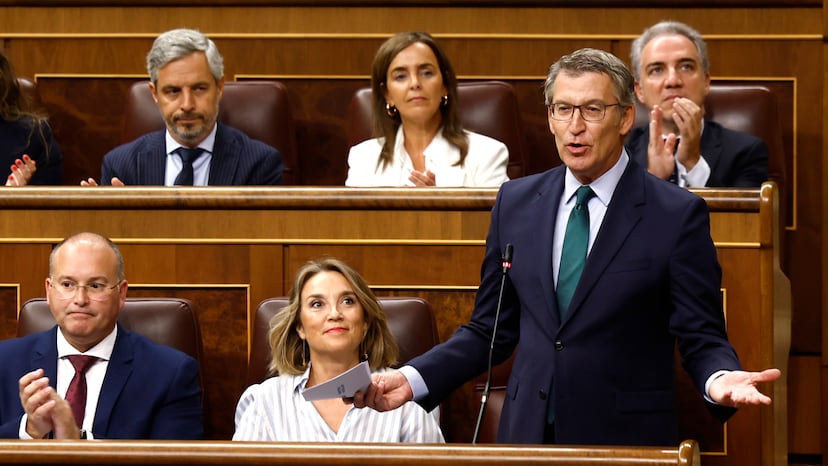 La jornada había comenzado con un Feijóo que por momentos recordó a su antecesor al frente del PP. El líder de la oposición quiso subrayar el tiempo transcurrido desde la última intervención del presidente en la Cámara y recurrió a la misma ironía que usaba Pablo Casado a menudo: “Bienvenido al Congreso, señor Sánchez”. Su discurso evocó también aquellos torbellinos de Casado enlazando a toda prisa un tema tras otro en apenas unos segundos. En menos de dos minutos, Feijóo mentó a Venezuela, el Banco de España, Franco, la corrupción o los Presupuestos. El plan de regeneración es en realidad, según el PP, “un plan de censura” de un Gobierno que ha desatado una “ofensiva contra jueces y periodistas” y que tiene una “concepción bananera del poder”.