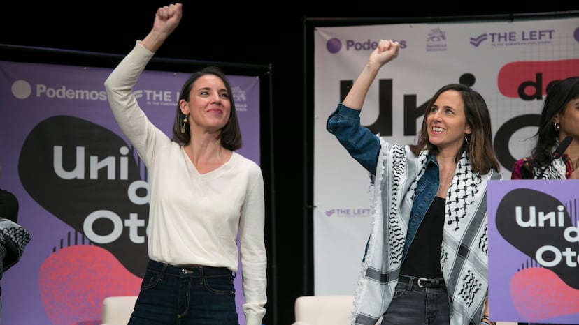 No hubo –tampoco un acto así es un contexto demasiado propicio– autocrítica por el fuerte retroceso electoral vivido por el partido, que hace menos de una década disfrutaba de 5 millones de votos y 69 diputados. El tono más bien era de celebración por haber salvado la bola de partido de la supervivencia. Aferrados a la visibilidad que le dan sus dos eurodiputados, sobre todo Irene Montero, los morados encaran ahora un proceso de renovación interna. La formación prevé culminar el 30 de noviembre la elección de hasta cinco ejecutivas autonómicas: Extremadura, Andalucía, Castilla-La Mancha, Euskadi y Galicia. Otras dos, La Rioja y Aragón, se renovarán más adelante. El partido de Belarra deja, en principio para junio del año que viene, su V Asamblea Ciudadana para decidir la próxima Secretaría General, ahora mismo en manos de Ione Belarra, que comparte protagonismo con Montero y también con Pablo Iglesias, que desde su posición mediática sigue siendo un referente del partido.