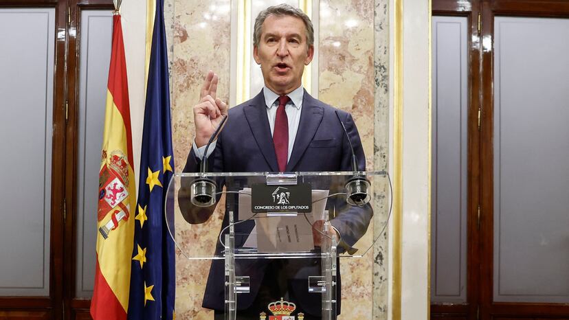 “Hoy es un día terrible desde el punto de vista judicial y político y un día para olvidar en la democracia española”, dijo Feijóo tratando de darle toda la solemnidad a su intervención en el Congreso. “El único político que tiene imputada a su pareja por corrupción es el presidente del Gobierno”, incidió. “El único político que tiene nombre en clave en una trama corrupta, el uno, es el presidente del Gobierno”, insistió sobre Sánchez. “El juez dice que existen indicios fundados y serios de que el número dos del señor Pedro Sánchez formó parte de una organización criminal. Es imposible que todo esto sucediera sin el conocimiento del uno, el señor Sánchez”, disparó. Además de pedir la dimisión de Sánchez, Feijóo lanzó varias acusaciones de calibre grueso contra el Gobierno progresista, como que su objetivo es “cerrar el Senado”, porque la reforma sobre RTVE diluirá el peso de la Cámara Alta en la elección de los consejeros de la televisión pública. “El caso más parecido a este atropello es Polonia”, censuró.
