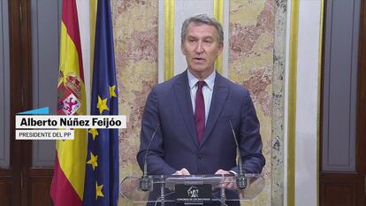Consciente de todo eso, y con otros frentes abiertos, como el malestar interno con su portavoz parlamentario, Miguel Tellado, y los roces que ha generado en el partido el llamado “clan gallego”, Feijóo busca reforzar su imagen de presidenciable con viajes al extranjero, reuniéndose en Italia con su primera ministra, la ultraderechista Giorgia Meloni, y cuidando mucho la escenografía de sus intervenciones públicas, con fondos que en alguna ocasión recordaban a las escalinatas de La Moncloa o a una de las salas del Palacio donde suele comparecer el presidente del Gobierno. El último intento fue este mismo miércoles, cuando el líder del PP convocó a la prensa en el salón del escritorio del Congreso de los Diputados para exigir “formalmente” la dimisión de Sánchez, al que acusó de “estar rodeado de corrupción” . El problema es que la solemnidad riñe con la reiteración y el propio Feijóo, así como Ayuso, la habían pedido en otras muchas ocasiones con anterioridad, casi desde la investidura del presidente del Ejecutivo, lo que, como en el cuento de Pedro y el lobo — siendo Pedro, en este caso, Feijóo— , devalúa su impacto.