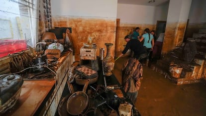 Fernanda Miota observa cómo su compañero relata a un programa de televisión la pesadilla que acabó con la muerte de su madre. La vio morir por una especie de claraboya que conecta las dos plantas de la vivienda donde vivía la familia. “Estaba con el agua al cuello y dejaron que se muriera”, maldice. El agua embarrada le llega ahora por los tobillos, pero apenas 12 horas antes había engullido la casa de sus padres. Hasta el techo. Por la ventana puede verse el destrozo después de que los muebles flotasen a su antojo por el salón. Está todo dado la vuelta, cubierto por una espesa manta de arcilla.