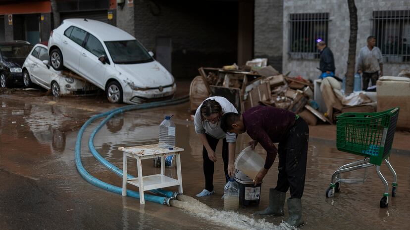 “Estamos sin luz, sin internet… Y sin agua”, cuenta la pareja, cansada, abatida y con ganas de darse una ducha. “Hemos perdido la casa, hemos perdido todo”, lamenta Sales. Estos días prevén instalarse en casa de familiares después de unas horas propias de una película de terror puro, en la que durante horas no supieron nada el uno del otro, mientras el rumor de un río salvaje les sorprendió. “La covid, las guerras, este temporal… Ya solo falta la invasión zombi”, ríe Guillermo, que tocado por la tragedia (“estamos incomunicados, ¿cuántos muertos van?, ¿51?”) encuentra, sin embargo, un resquicio para el humor: pronostica que los coches apilados unos encima de otros serán motivo preferente en las próximas fallas.