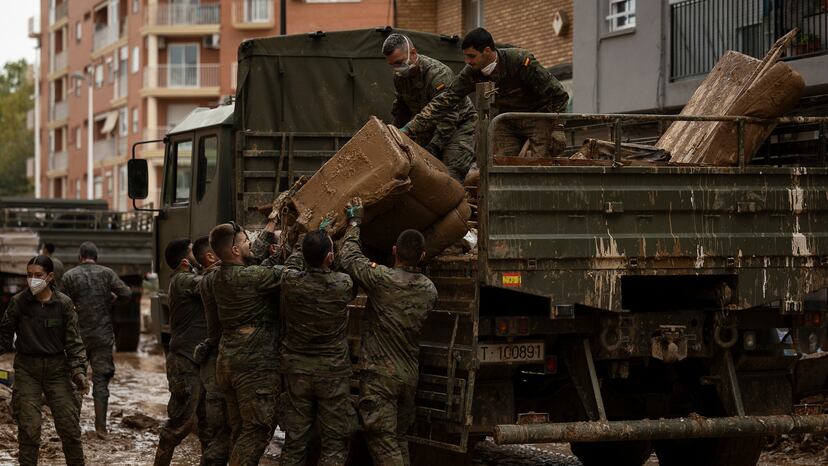El Ministerio de Defensa tenía previsto aumentar progresivamente el despliegue de militares, pero la petición el sábado del presidente valenciano, Carlos Mazón, obligó a acelerar el ritmo de la Operación Utiel Requena. Miembros del Ayuntamiento de Paiporta mantuvieron en la mañana de este domingo una reunión con responsables de las Fuerzas Armadas desplazados en la zona cero de la dana para coordinar el trabajo de los efectivos, cuyo número va en aumento, según confirman fuentes del Consistorio—a la espera de actualizar los datos concretos hoy—, aunque siguen implorando que llegue más maquinaria pesada para reforzar la retirada de residuos de las calles.