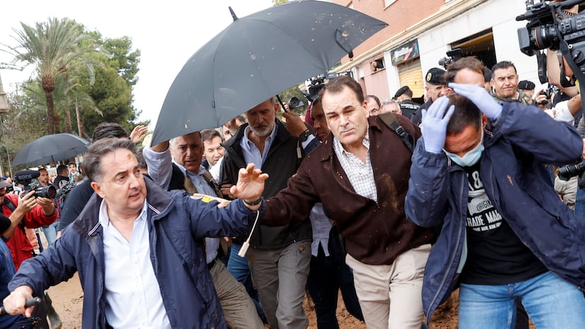 Otro joven que colabora con Revuelta, de nombre Pablo —guarda su apellido—, madrileño de 21 años, es el que hablaba acaloradamente con el rey Felipe VI llevando una sudadera de la División Azul, la enviada por Franco a luchar junto a los nazis. En conversación telefónica, Pablo afirma que es colaborador, aunque no miembro, de Revuelta, organización de la que asegura que había integrantes en Paiporta el domingo porque la entidad “tiene gente allí repartiendo alimentos”. Pablo niega su participación en cualquier altercado y afirma que acudió por “deber moral” a Paiporta para “quitar fango”. Y sobre su sudadera, niega connotaciones neonazis: “La División Azul fue un grupo de voluntarios que luchó contra el comunismo”.