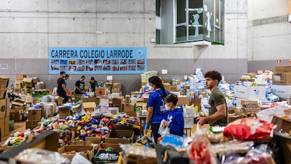 Todo está organizado y clasificado como si fuera un supermercado. Por un lado las conservas, por otro la leche, las galletas, las lejías, los detergentes, las frutas y verduras frescas, el agua… Por las tardes muchos restaurantes y colegios llevan comida caliente que les sobra. Y hay gente del barrio que cocina cada día para los afectados. Abren de diez a seis de la tarde, aunque en realidad trabajan de siete de la mañana a siete de la tarde porque, como en todas partes, hay muchísimas cosas por hacer. María Muñoz, titular del centro, de 47 años, explica que están desbordados de pañales y ropa de bebé que no necesitan, porque los bebés se han ido casi todos del barrio a zonas no inundadas. También hay un exceso de ropa en general, porque solo la han perdido los que viven en bajos. Pero faltan botas de agua. Y en otros puntos necesitan detergente de ropa y lavavajillas.