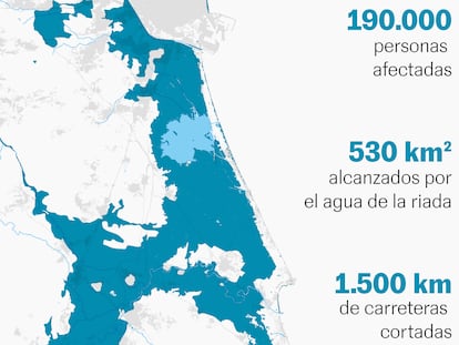 En EL PAÍS hemos analizado los datos de la riada, con información de lluvia, caudal en barrancos y área inundada. La comparación con los retornos que manejaban autoridades y científicos sirve para evidenciar la magnitud histórica de la catástrofe en la comarca de L’Horta Sud.