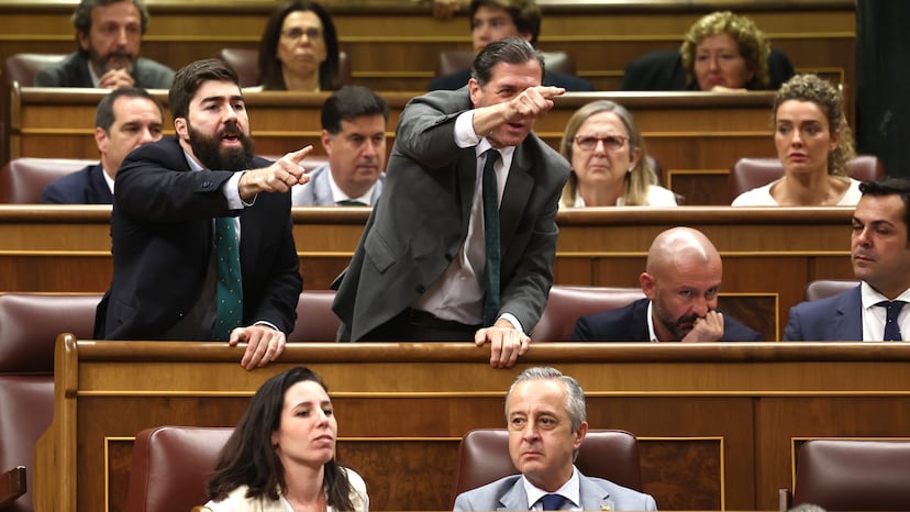 Hasta no hace mucho, los diputados de Vox se revolvían y protestaban airadamente ante la Mesa cuando alguien los calificaba de fascistas. Ahora tampoco ellos se inmutan. El diputado del BNG Néstor Rego se lo espetó con todas las letras este jueves comentando las palabras de Mariscal: “Aunque les moleste, esto los retrata como lo que son: fascistas”. En la bancada de Vox no se escuchó ni un quejido. En la misma idea, aunque de forma menos directa, incidiría después la socialista Rafaela Romero, así como Gerardo Pisarello, de Sumar, y Martina Velarde, de Podemos. También Gabriel Rufián, de ERC, que se dirigió expresamente a la presidencia para pedirle que no permita manifestaciones que están proscritas por la Ley de Memoria Democrática. Y aprovechó para denunciar que cuando Velarde, que se sienta muy próxima a él, regresaba a su escaño después de intervenir, un diputado de Vox le había soltado: “Tómate la pastilla”. “Están envalentonados”, avisó Rufián.