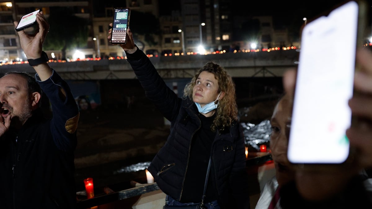 A las 20.11 minutos, cientos de personas han hecho sonar la alarma en la concentración de Valencia. Hace un mes, el 29 de octubre, la Generalitat mandó a esa hora la alerta a los móviles de los valencianos para avisar de la gravedad de la dana que mató a más de 200 personas y arrasó 80 municipios.