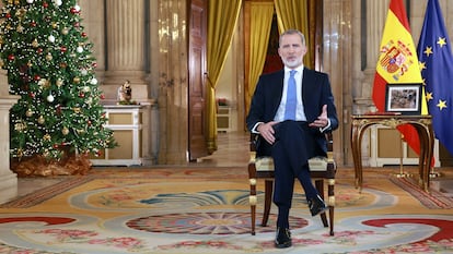 El recuerdo de la dana que azotó sobre todo a la Comunidad Valenciana el pasado 29 de octubre, dejando 231 fallecidos y cuatro desaparecidos, ha sido protagonista en el discurso. “No debemos olvidar nunca el dolor y la tristeza que ha dejado [la tragedia] en sus familias”, ha insistido junto a una fotografía ―la única del escenario en el que ha grabado su discurso― en la que se ve a civiles voluntarios y militares retirando lodo de las calles de Paiporta. “Hemos comprobado —y entendido— la frustración, el dolor, la impaciencia, las demandas de una coordinación mayor y más eficaz de las administraciones” en la gestión de la tragedia, ha afirmado el Rey, que ha pedido que las ayudas lleguen “a todos los que las necesiten”.