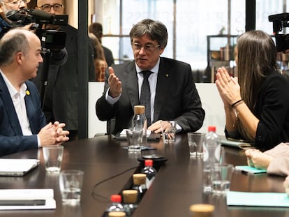 El PSOE y Junts han concretado este lunes en Bruselas esta vez, y no en Suiza, la reunión que tenían prevista para esta semana después de que Carles Puigdemont anunciara la suspensión de las “negociaciones sectoriales” el pasado viernes. Santos Cerdán, el negociador del PSOE, se ha trasladado a Bruselas para reunirse con Puigdemont en su casa en Waterloo, un cambio sobre las anteriores citas, que eran en Suiza y con el mediador internacional pactado entre ambos.