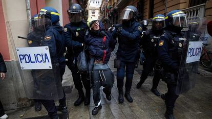 Los colectivos acusan a los agentes de establecer un cordón de seguridad que, entienden, facilitó “la actividad ilegal” de una empresa de desalojos extrajudiciales
