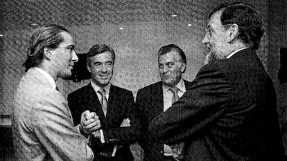 Fernández Díaz negó este miércoles la reunión grabada por Villarejo y difundida por EL PAÍS. Lo hizo en la comisión del Congreso a la que acudió justo después de que Rajoy, preguntado por esa reunión, contestara: “Miembros de mis diferentes gabinetes ministeriales han ajustado sus comportamientos a la Ley y a la Constitución Española (…) Me pregunta si han cenado o comido dos o tres policías, a mí que me cuenta, ¡coño!”.