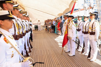 las escalas que realiza el barco, al menos 250 españoles residentes en el extranjero deciden jurar bandera", añade la nota de la Casa Real.FRANCISCO GÓMEZ/CASA REAL (EFE)