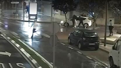 La secuencia, ocurrida en el municipio toledano de Fuensalida (12.508 habitantes), apenas dura 12 segundos. Un joven se mete corriendo en un turismo blanco y casi no puede ni cerrar la puerta. Le persiguen al menos cinco personas que instantes después rodean el vehículo y comienzan a golpear los cristales de las puertas o se colocan en la parte delantera para que no pueda moverse del sitio. En esta escena, ocurrida en la noche del viernes 21 de febrero, uno de los implicados atacó al conductor con un machete de grandes dimensiones y le ocasionó heridas que pusieron en peligro su vida, según ha informado este miércoles la Guardia Civil. Hay cinco detenidos, cuatro de ellos menores de edad de 16 y 17 años. El mayor, de 22 años, ingresó en prisión provisional por orden de la titular del Juzgado de Instrucción de guardia de Torrijos.