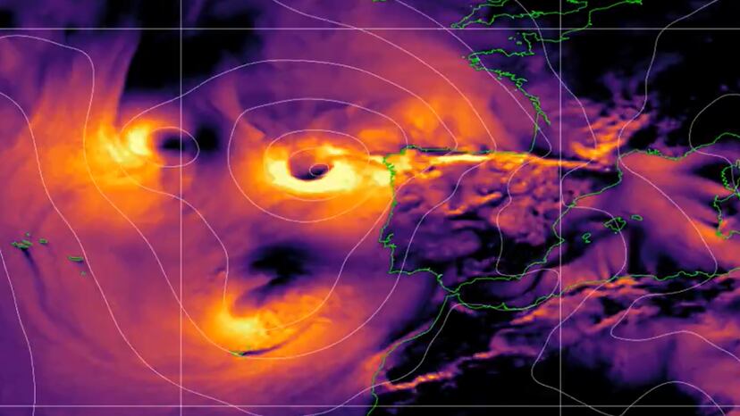 Como indica Barrera en su mensaje en X, el meteorólogo japonés “Sakuhei Fujiwhara describió en 1921 la interacción de dos vórtices atmosféricos que se aproximan”. Este fenómeno, “extremadamente complejo, se conoce hoy como efecto Fujiwhara y tiene especial interés en el pronóstico de ciclones tropicales”.“Borrasca con tres vórtices fusionándose. Toda una preciosidad”, responde un tuitero al meteorólogo, que acompaña su mensaje de una hipnótica animación de las rachas de viendo e isobaras en superficie.