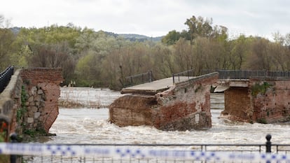 La crecida del caudal del río Tajo ha provocado el derrumbe de dos tramos del conocido como puente viejo de Talavera de la Reina (84.000 habitantes) en la madrugada de este domingo. “Esta noche es un día terrible para la historia de Talavera. Nuestro puente viejo o ‘romano’ acaba de derrumbarse una parte. Una avenida de agua terrible para la ciudad. Gracias que lo cerramos para el paso ciudadano. Hoy mi corazón como alcalde sufre por esta pérdida patrimonial”, ha escrito el alcalde de la ciudad, José Julián Gregorio, en su cuenta de X. Junto con este mensaje, publicado pasada la 1.00 de la madrugada, el regidor ha añadido un vídeo en el que se podía ver cómo uno de los arcos del puente se desploma debido a la intensa corriente del río. Cerca del mediodía, el presidente del Gobierno, Pedro Sánchez, ha expresado su solidaridad con los vecinos por la rotura de “todo un símbolo de la ciudad” y ha ofrecido la ayuda del Ejecutivo para la reconstrucción. “Protegeremos el patrimonio de todos”, ha asegurado en un mensaje en la misma red social.