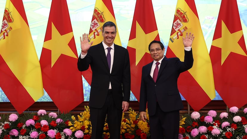 Sánchez insistió en mensajes positivos hacia el país para buscar oportunidades comerciales e industriales, además de grandes contratos de obra pública para empresas españolas. “España valora los avances en desarrollo de Vietnam, y desea acompañarlos. España y Vietnam se encuentran entre las economías más dinámicas del mundo. Venimos a firmar acuerdo para caminar hacia una relaciónestratégica integral. Queremos fortalecer nuestra colaboración en sectores tan importantes como la agricultura y la pesca”, explicó Sánchez, que viaja también acompañado por el ministro de Exteriores, José Manuel Albares. El mensaje frente a Trump y a favor del multilateralismo que está poniendo en cuestión el presidente de Estados Unidos es, pues, muy claro, y forma parte del eje central de este viaje que llega en plena tormenta arancelaria y que tendrá su momento cumbre con el encuentro en el Palacio del Pueblo con Xi Jinping.