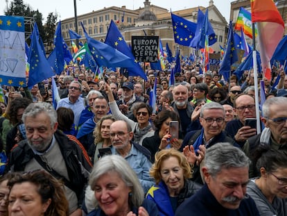 “La UE personifica los valores que hacen mejor al ser humano”, ha dicho el expresidente popular, quien ha recordado, justo cuando se cumplen 11 días del gran apagón que dejó sin electricidad a la península Ibérica y en un contexto de rearme en el que Europa revisa sus políticas de Defensa ante la incertidumbre que ha dejado la invasión de Rusia de Ucrania, que la UE tiene que poner fin a la dependencia energética y de seguridad. “Son cuestiones que no podemos retrasar”, ha alentado. Hacia esa autonomía estratégica de la UE también han ido dirigidas las palabras de Borrell. “Hoy la Historia tiene las caras de Donald Trump, de Xi Jinping y de Vladímir Putin, y ninguno de ellos es europeo”, ha ilustrado Borrell para remarcar que “Europa ya no forja el mundo, sino que es el mundo el que forja a Europa”, unas palabras que también ha recogido Felipe VI en su discurso de clausura.