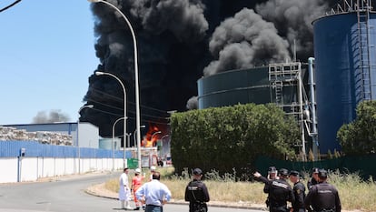 El portavoz de los Bomberos de la provincia de Sevilla, Manuel Blanco, que también es experto en riesgos químicos, ha indicado a este diario que la empresa afectada se dedica a manipular productos químicos para su envasado y distribución. “Son productos corrosivos e inflamables, sustancias que en principio no son peligrosas, pero que pueden convertirse en tóxicas como consecuencia de la combustión al contactar con el eter”, explicaba el profesional antes de que se diera por controlado el incendio y quee enumera productos como el cloro, disolventes o acetona.