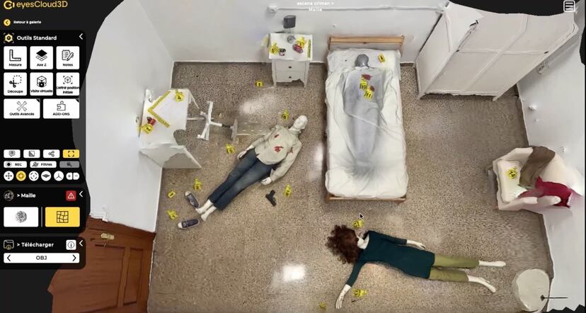 La escena de un crimen. Mil detalles que analizar. ¿Cuál es la profundidad de esa huella? ¿Qué distancia hay entre la mano y el cuchillo? ¿Cuál es la dirección de las salpicaduras de sangre? Los equipos especializados de los cuerpos policiales saben que cada elemento cuenta, que es imprescindible no dejar nada por revisar, que una inspección ocular puede durar horas o días. Una empresa nacida en Badajoz ha creado una plataforma de generación de escenarios en 3D que lleva años escuchando a los policías para saber qué necesidades tienen y ser capaces de reproducir todo lo que requiere una investigación con una simple grabación de móvil que permita calcular medidas, direcciones, distancias y marcas con unos simples comandos. Ya llevan tiempo haciéndolo con la investigación de accidentes de tráfico, con casos que han llegado ya a los tribunales.