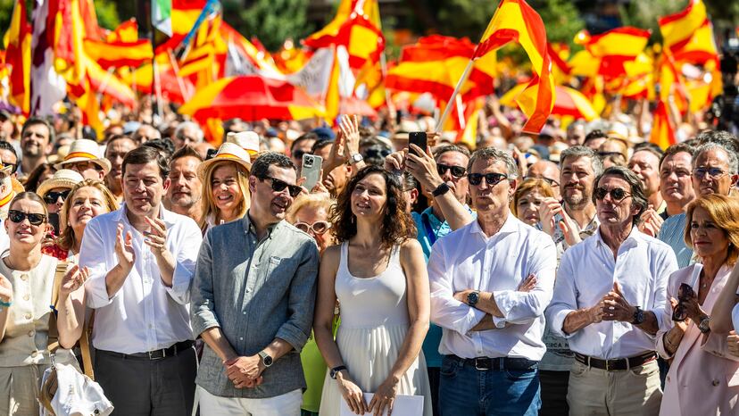 Así, en medio de un clima de crispación máxima y con todos los puentes volados entre PSOE y PP, Génova había movilizado durante la última semana a las bases y a los territorios para trasladar la presión política del primer partido de la oposición a la calle. Ocho presidentes autonómicos del Partido Popular secundaron la protesta junto a los expresidentes del Gobierno José María Aznar y Mariano Rajoy, que se situaron en la foto central junto a Feijóo. La mayoría de barones han viajado a Madrid dos días después de enfrentarse cara a cara con Sánchez en Barcelona, al que pidieron elecciones anticipadas durante la tensa Conferencia de Presidentes.