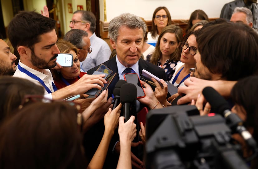 Pero este jueves, tras las revelaciones de la Guardia Civil sobre Cerdán, Feijóo se vio reforzado en la estrategia que el PP lanzó antes de conocerse hasta qué punto alcanzaba el presunto caso de corrupción en la cúpula del PSOE. “Si alguien tenía dudas de nuestra manifestación, supongo que se han disipado”, dijo ufano. “Si alguien tenía dudas de que considerábamos que había una trama mafiosa detrás del partido del Gobierno y del Gobierno, supongo que se habrán disipado”, apostilló, y se marchó rápido por una escalera lateral del pasillo del Congreso, disculpándose por no llevar un traje completo, como acostumbra.