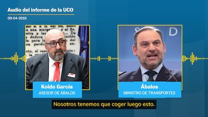 La reunión se produjo el 9 de abril de 2019, previsiblemente en la sede del Ministerio de Transportes, en el despacho de José Luis Ábalos, entonces al frente de la cartera. De hecho, Koldo García, su asesor y la persona que graba la conversión recuperada por la Guardia Civil, etiqueta el archivo de audio con la dirección de la sede en Madrid del departamento. La charla, incorporada al informe que la Unidad Central Operativa (UCO) ha elaborado sobre la presunta implicación del hasta este jueves secretario de organización del PSOE, Santos Cerdán, es larga y en ella García y Ábalos hablan sobre la adjudicación de contratos a diversas constructoras en Logroño y Sevilla ―que ahora están siendo investigados por la sospecha de que fueron amañados― y sobre acuerdos económicos entre España y Venezuela. Sin embargo, casi al final de la conversación, esta da un giro y ambos se ponen a hablar sobre dónde va a pasar Ábalos el sábado y domingo siguiente. Tras hacer referencia a varias ciudades del sureste penínsular y como viajar entre ellas, charlan sobre cómo encontrarse con dos mujeres con las que ya habían estado antes y con las que esperan poder reunirse para un “discreto” fin de semana. Este es parte del fragmento:
